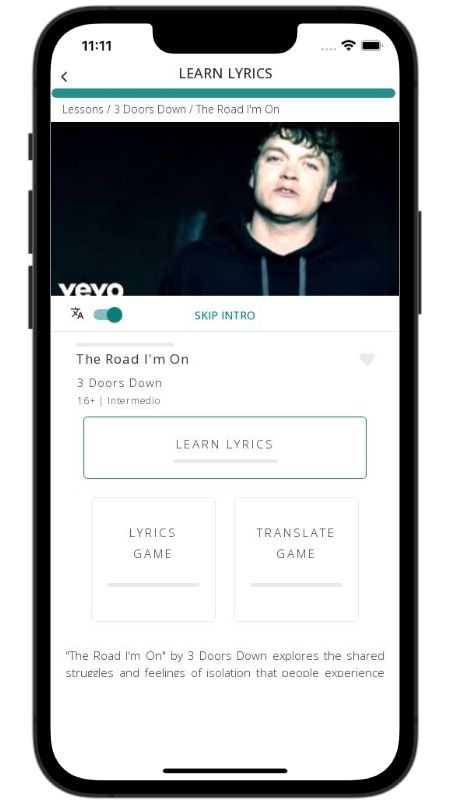 In addition to reading lyric translations, you can now learn English with music and lyrics from your favorite artists.