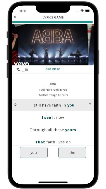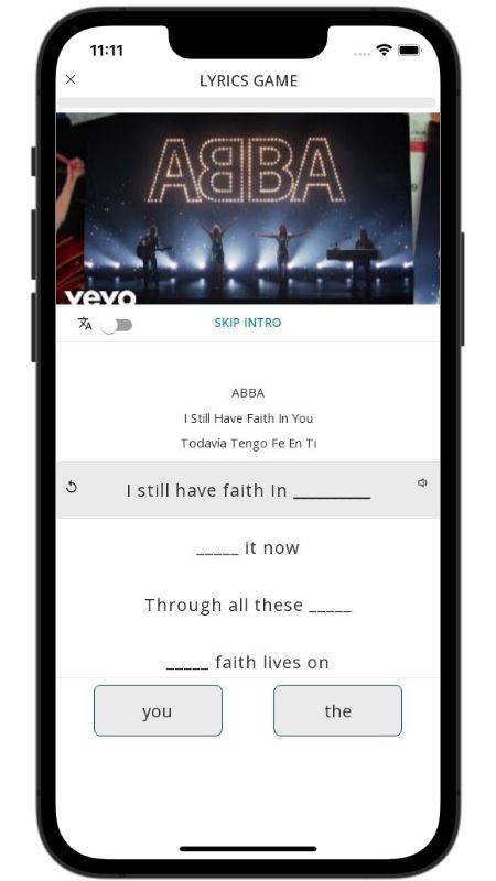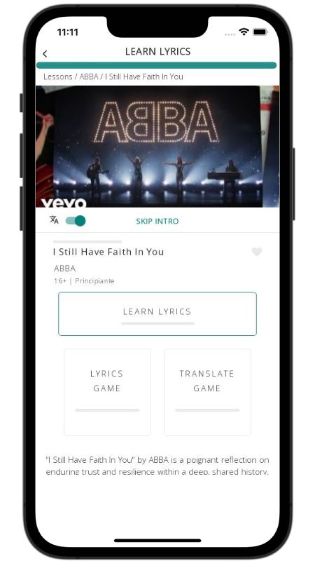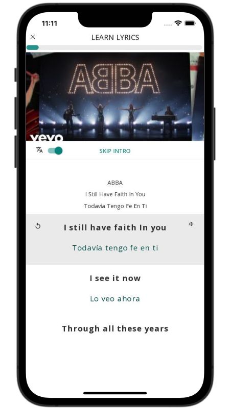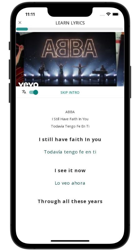 In addition to reading lyric translations, you can now learn English with music and lyrics from your favorite artists.