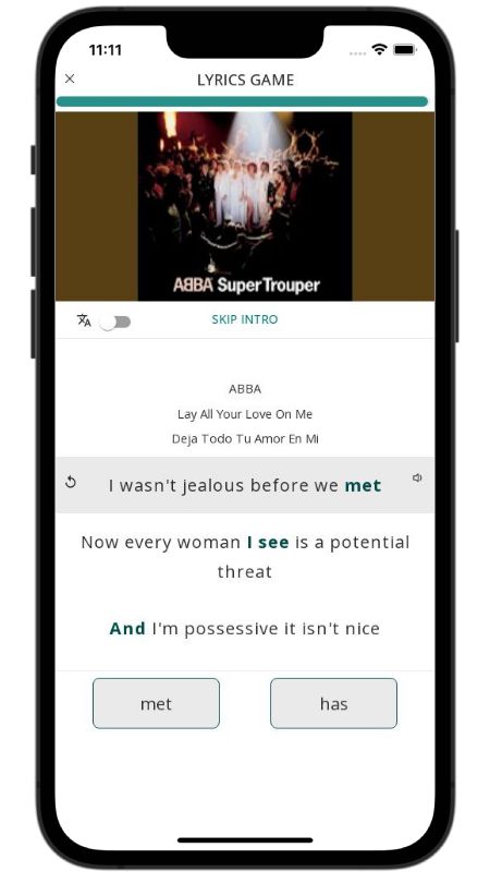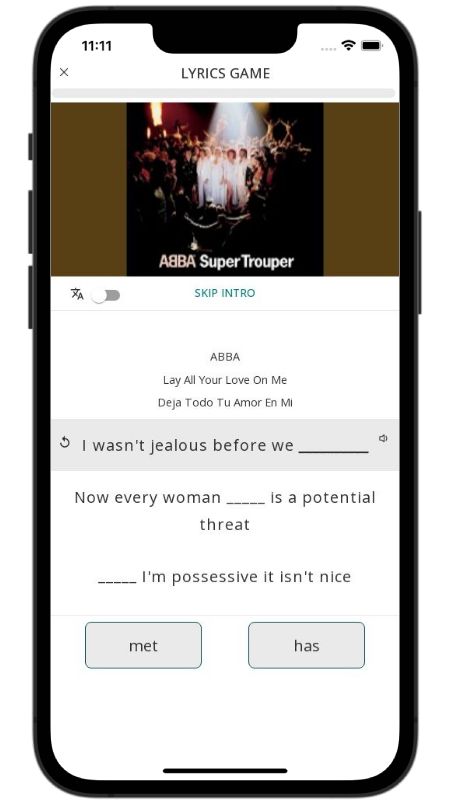 In addition to reading lyric translations, you can now learn English with music and lyrics from your favorite artists.