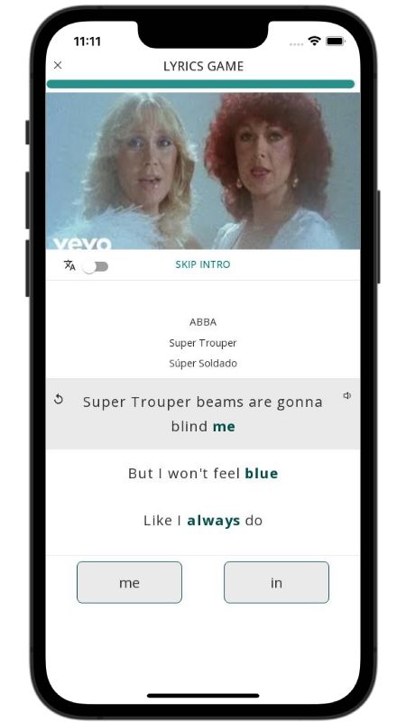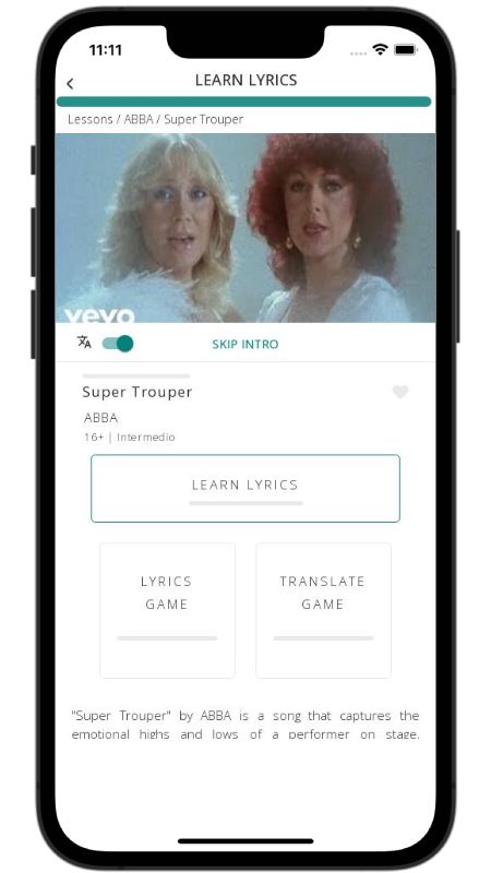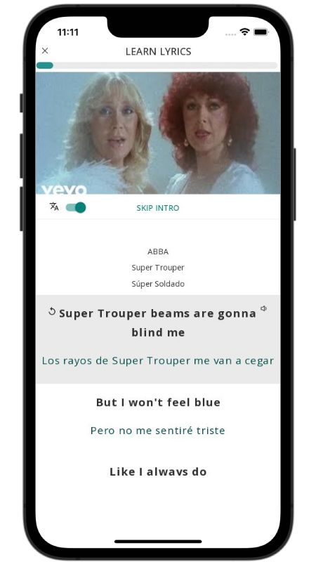 In addition to reading lyric translations, you can now learn English with music and lyrics from your favorite artists.