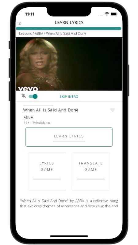 In addition to reading lyric translations, you can now learn English with music and lyrics from your favorite artists.