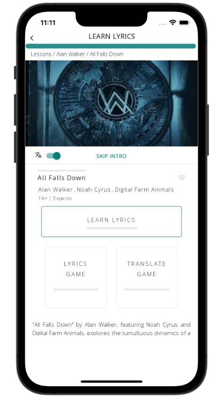 In addition to reading lyric translations, you can now learn English with music and lyrics from your favorite artists.