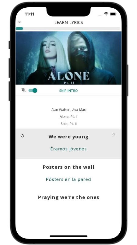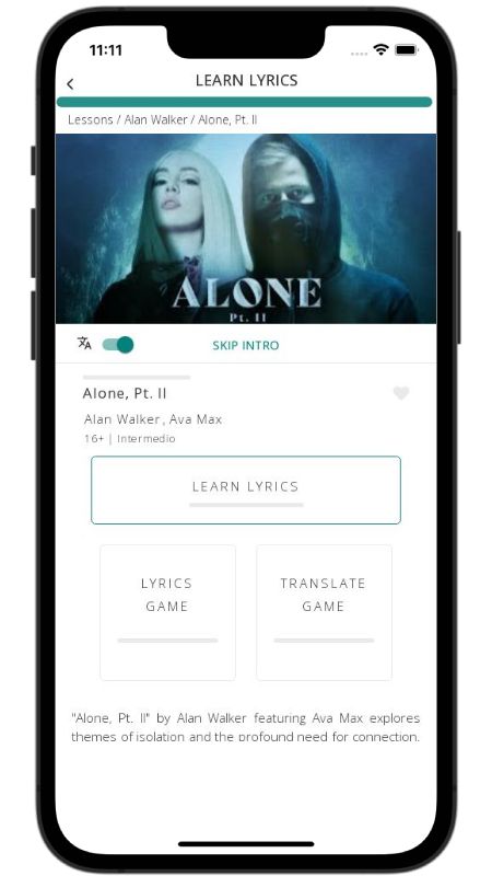 In addition to reading lyric translations, you can now learn English with music and lyrics from your favorite artists.