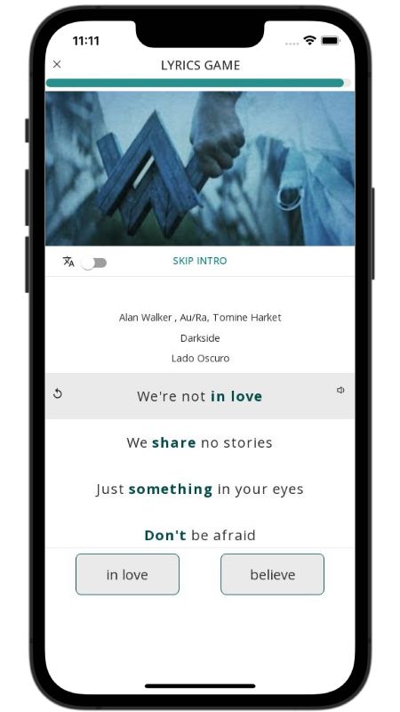 In addition to reading lyric translations, you can now learn English with music and lyrics from your favorite artists.