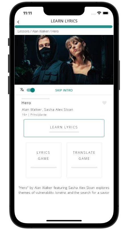 In addition to reading lyric translations, you can now learn English with music and lyrics from your favorite artists.