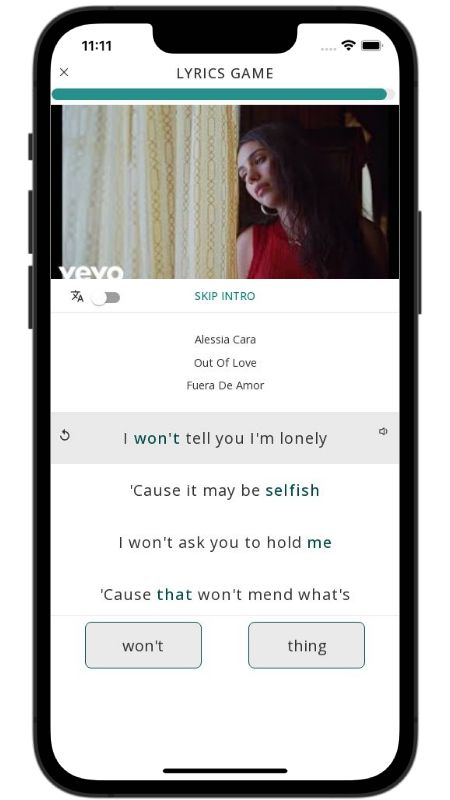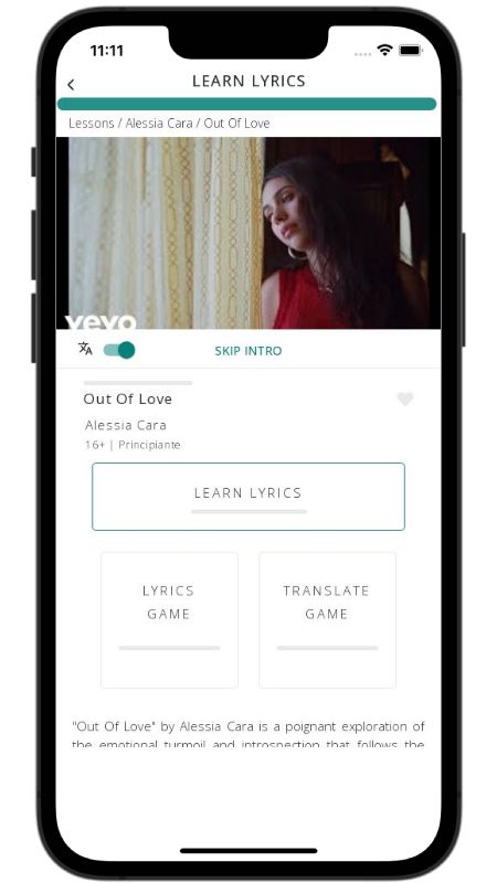 In addition to reading lyric translations, you can now learn English with music and lyrics from your favorite artists.