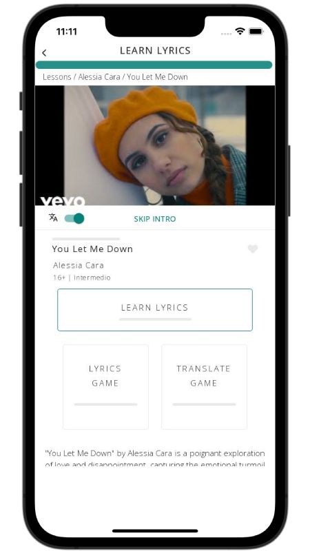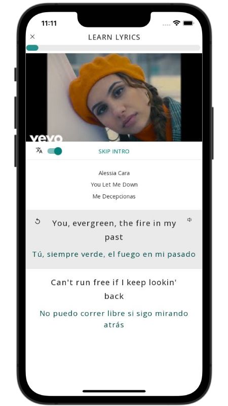 In addition to reading lyric translations, you can now learn English with music and lyrics from your favorite artists.