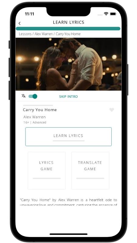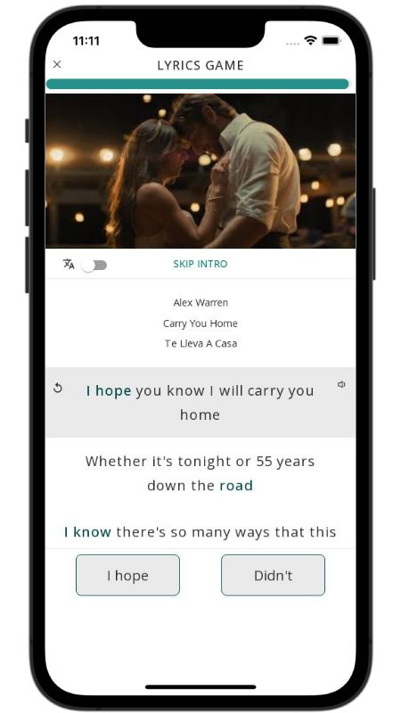 In addition to reading lyric translations, you can now learn English with music and lyrics from your favorite artists.