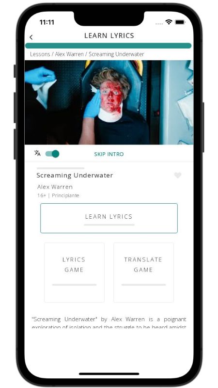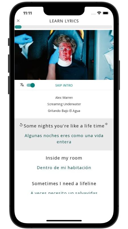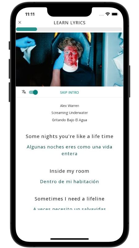 In addition to reading lyric translations, you can now learn English with music and lyrics from your favorite artists.
