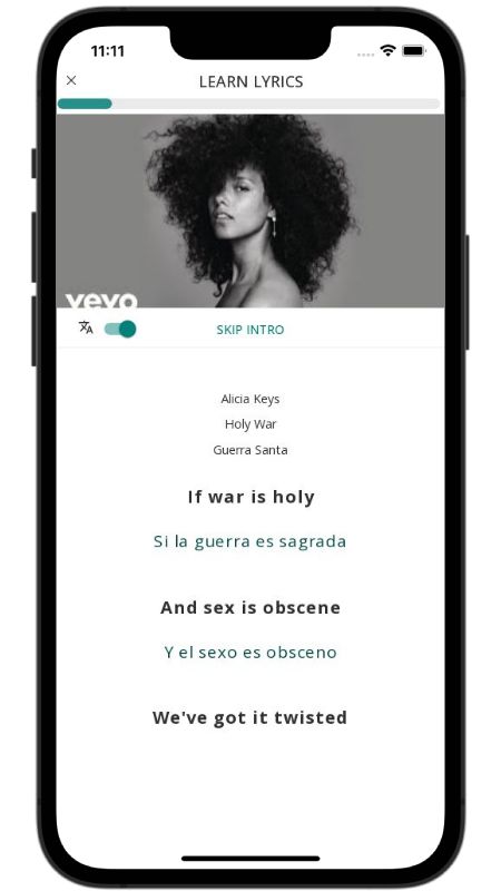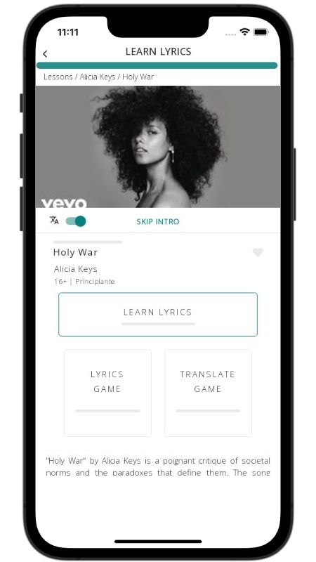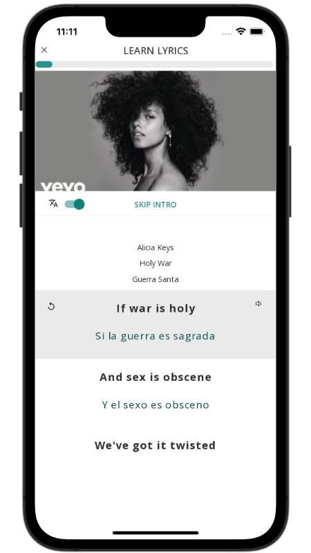 In addition to reading lyric translations, you can now learn English with music and lyrics from your favorite artists.