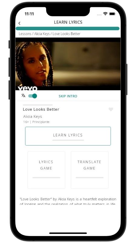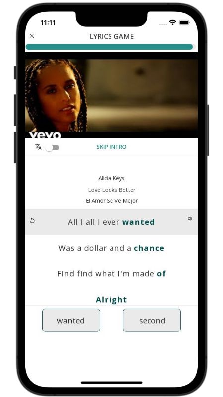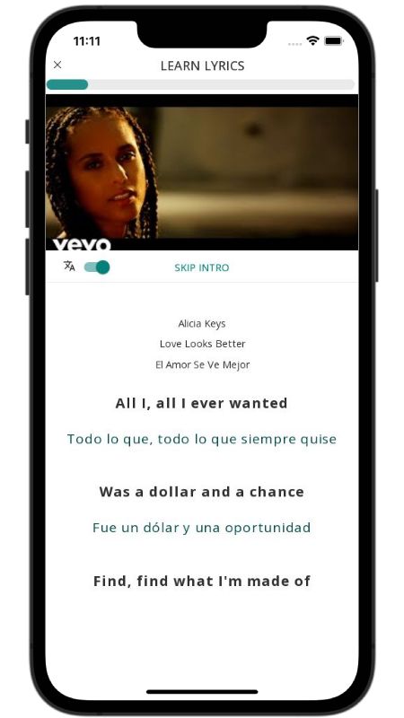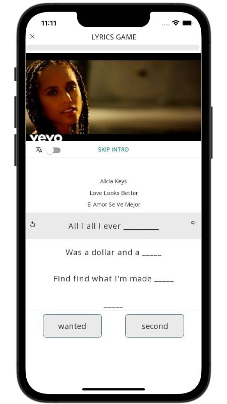 In addition to reading lyric translations, you can now learn English with music and lyrics from your favorite artists.
