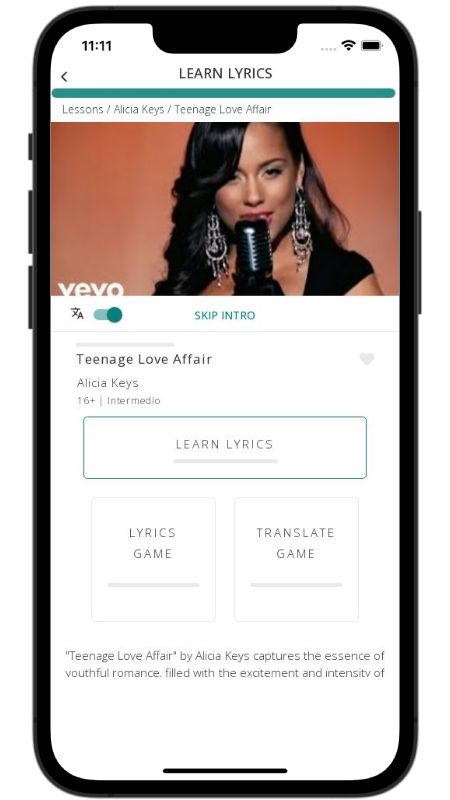 In addition to reading lyric translations, you can now learn English with music and lyrics from your favorite artists.