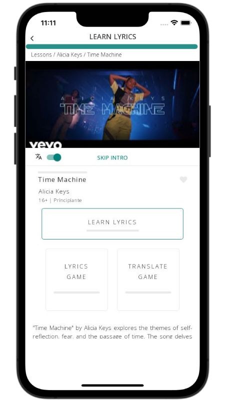 In addition to reading lyric translations, you can now learn English with music and lyrics from your favorite artists.