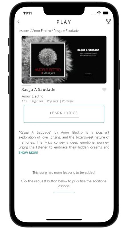 Rasga A Saudade is an electrifying pop-rock anthem where Amor Electro turns nostalgia into a rallying cry: tear open the longing, tuck your hidden dreams close like a secret heat for cold nights, and sprint back to the place that truly feels like home. The lyrics paint love as a stubborn flame—one that refuses to leave, heals and hurts in equal measure, and needs nothing more than its own existence to be right. While memories can sting, the song urges you to ignite your heart, let your dreams sail free, and trust that whoever loves simply has reason enough. In short, it is a pulsating reminder to embrace passion, honor your desires, and let love guide every bold return to yourself.