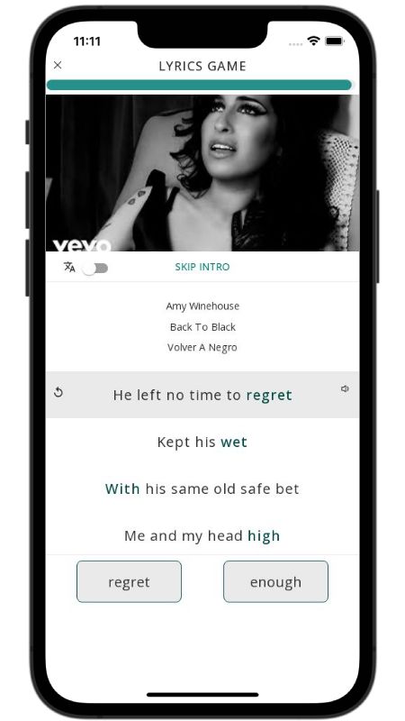 In addition to reading lyric translations, you can now learn English with music and lyrics from your favorite artists.