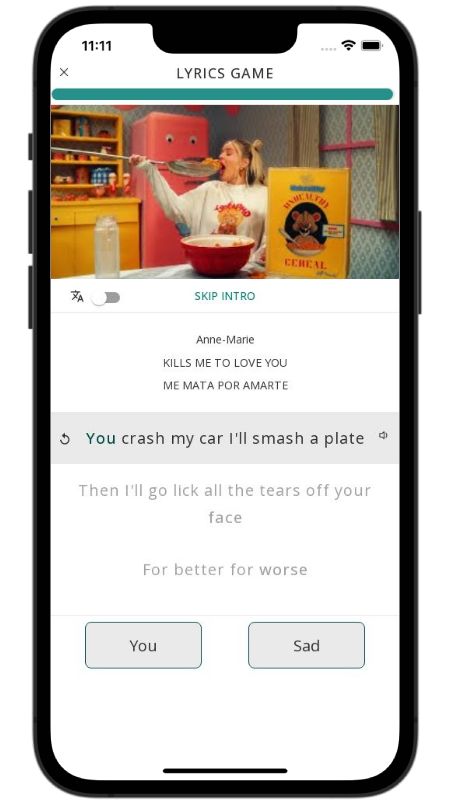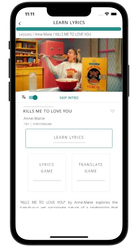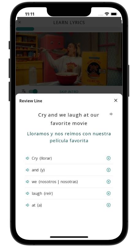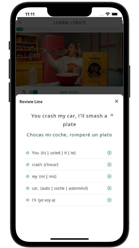 In addition to reading lyric translations, you can now learn English with music and lyrics from your favorite artists.