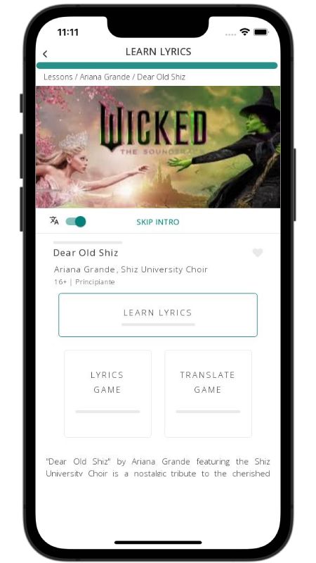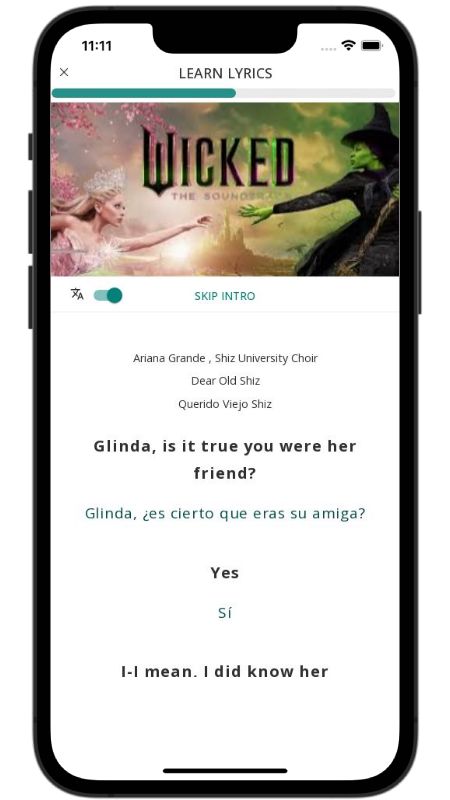 In addition to reading lyric translations, you can now learn English with music and lyrics from your favorite artists.