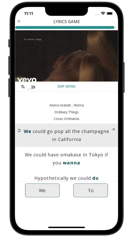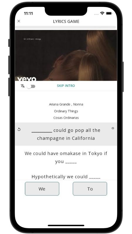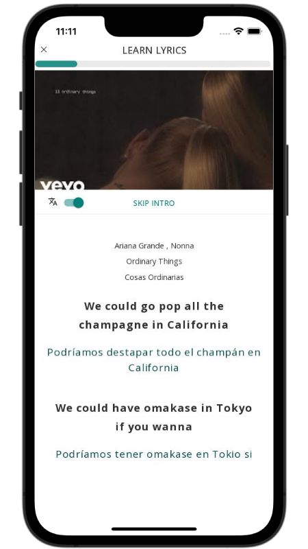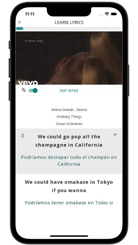 In addition to reading lyric translations, you can now learn English with music and lyrics from your favorite artists.