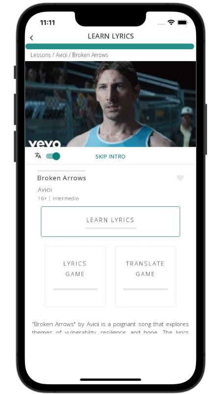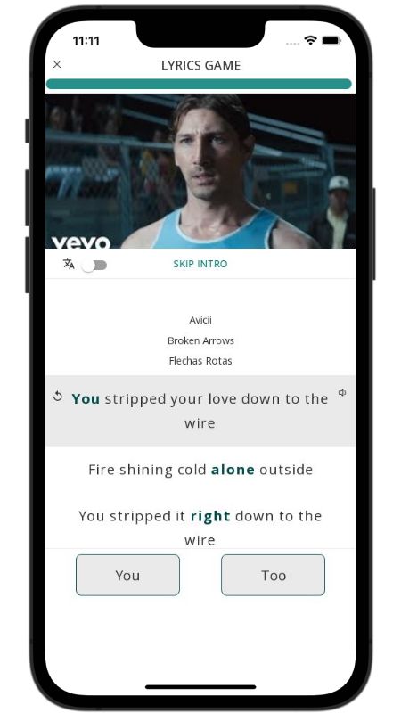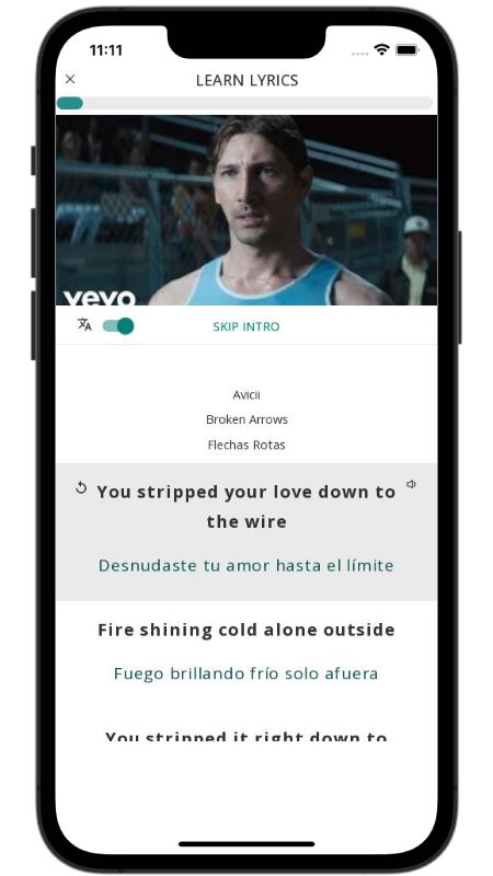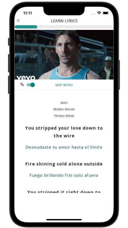 In addition to reading lyric translations, you can now learn English with music and lyrics from your favorite artists.