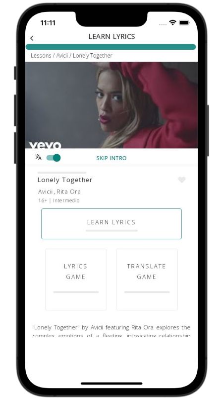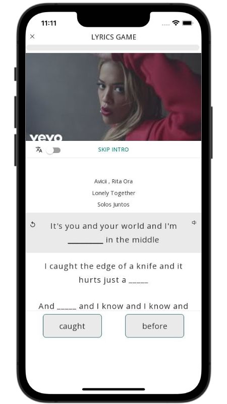 In addition to reading lyric translations, you can now learn English with music and lyrics from your favorite artists.