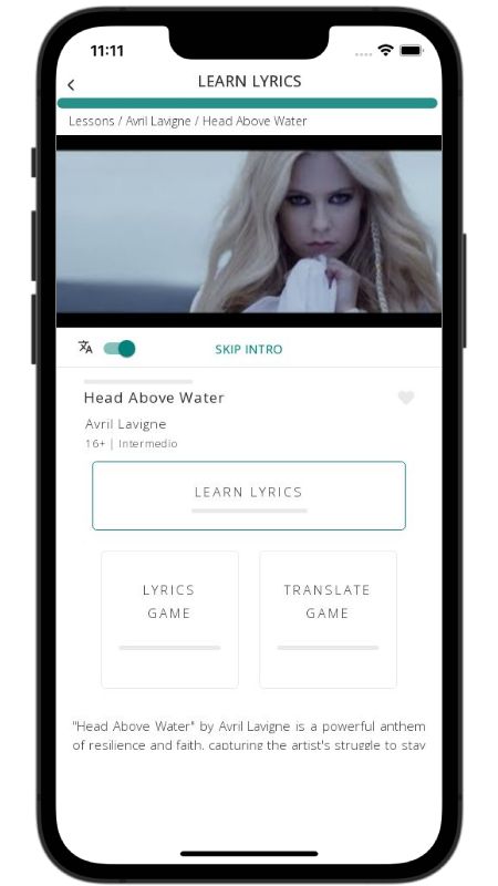 In addition to reading lyric translations, you can now learn English with music and lyrics from your favorite artists.