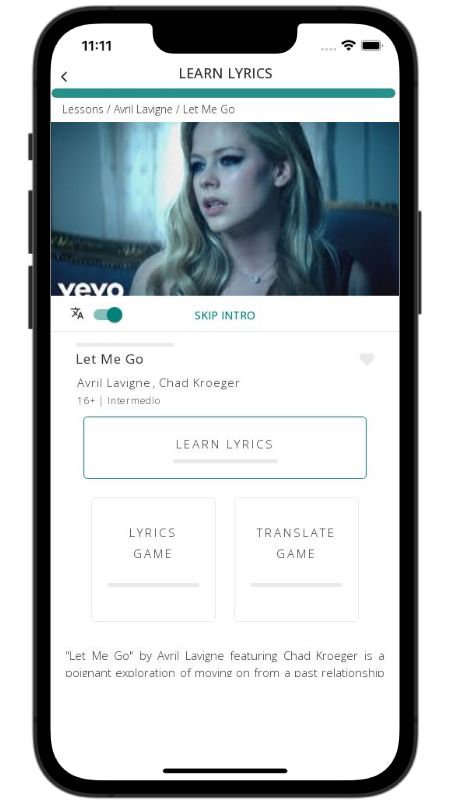 In addition to reading lyric translations, you can now learn English with music and lyrics from your favorite artists.