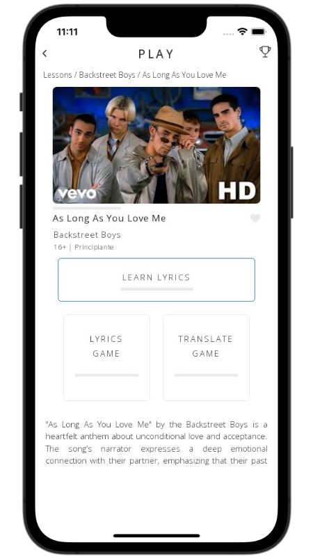 In addition to reading lyric translations, you can now learn English with music and lyrics from your favorite artists.