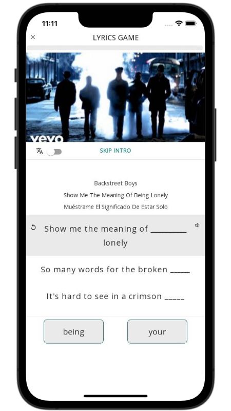 In addition to reading lyric translations, you can now learn English with music and lyrics from your favorite artists.