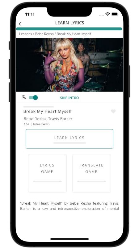 In addition to reading lyric translations, you can now learn English with music and lyrics from your favorite artists.