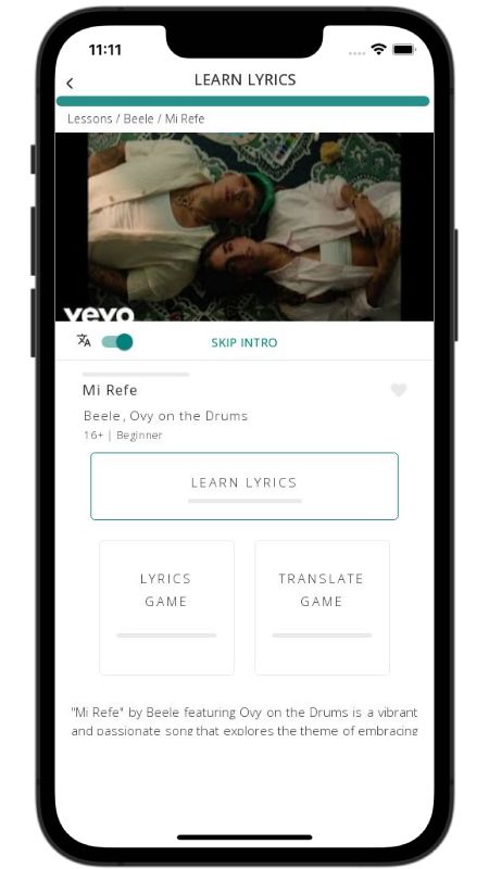 In addition to reading lyric translations, you can now learn Spanish with music and lyrics from your favorite artists.