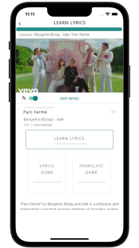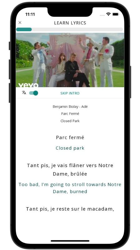 In addition to reading lyric translations, you can now learn French with music and lyrics from your favorite artists.