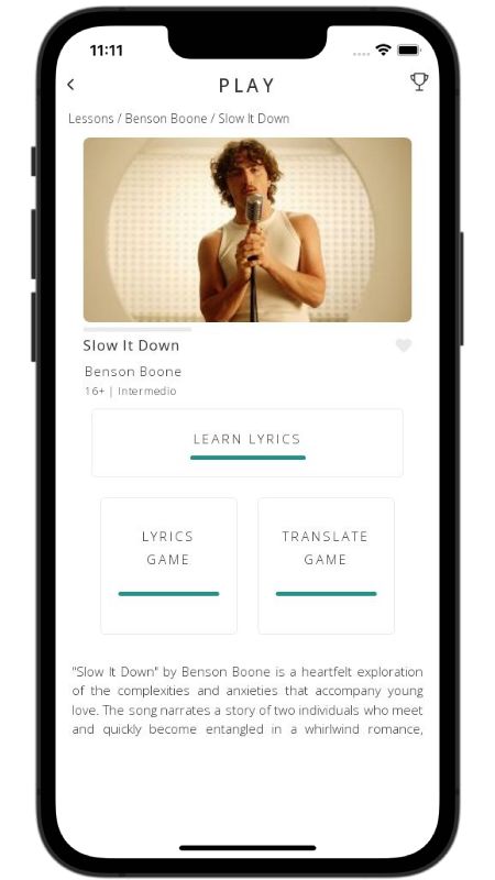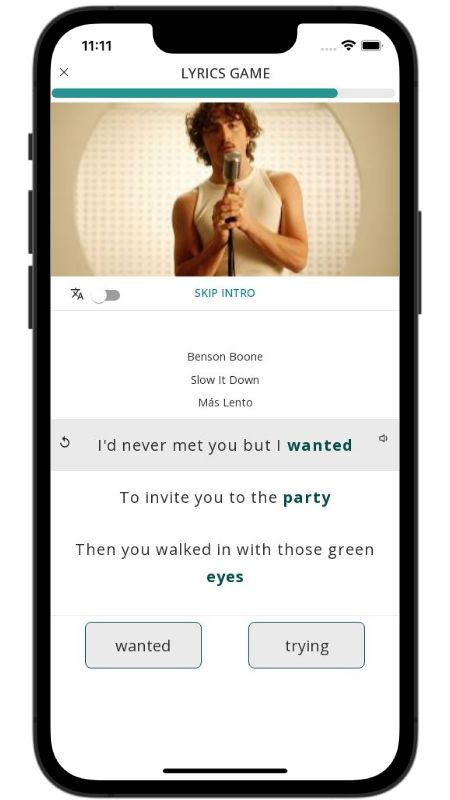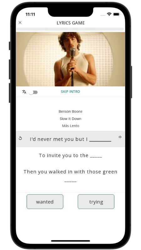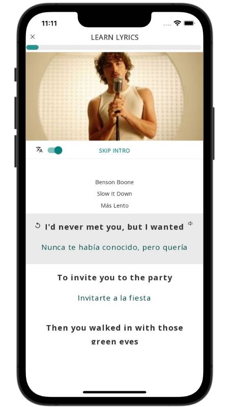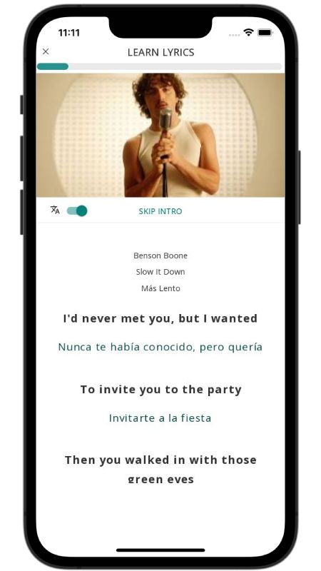 In addition to reading lyric translations, you can now learn English with music and lyrics from your favorite artists.