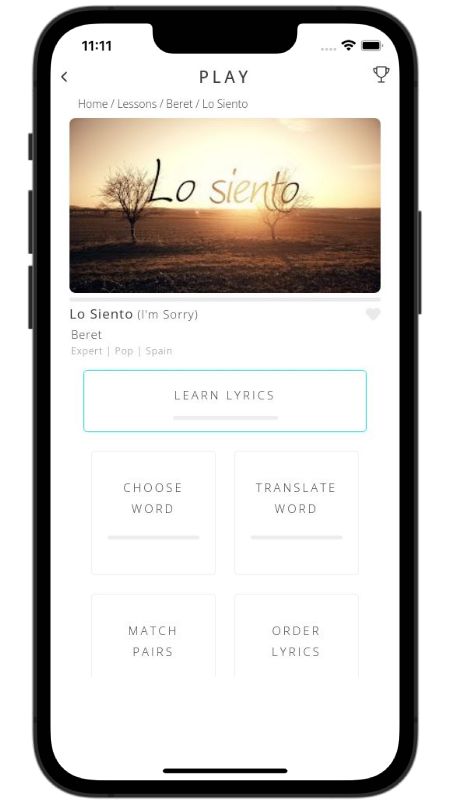 In addition to reading lyric translations, you can now learn Spanish with music and lyrics from your favorite artists.