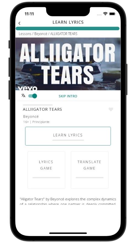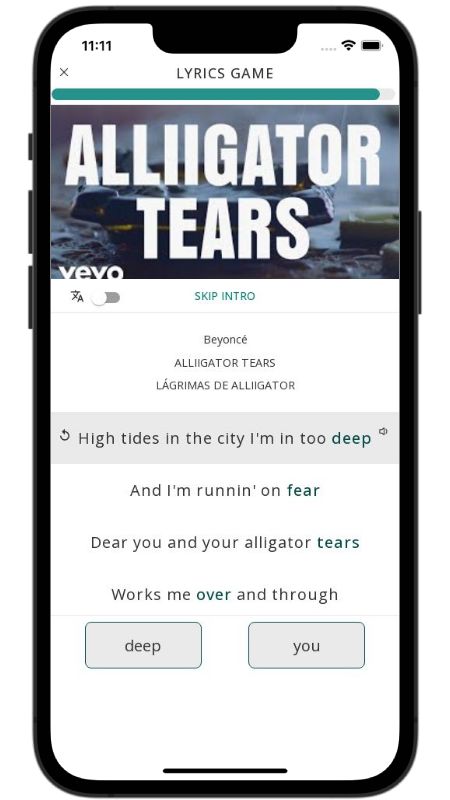 In addition to reading lyric translations, you can now learn English with music and lyrics from your favorite artists.