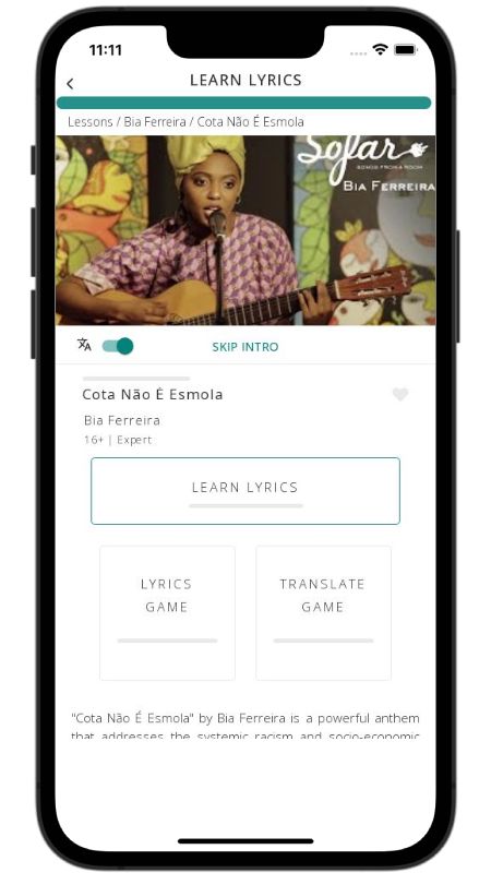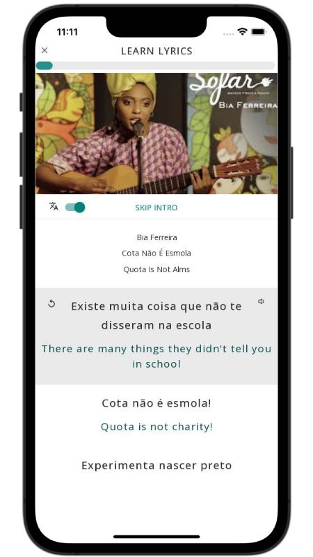 In addition to reading lyric translations, you can now learn Portuguese with music and lyrics from your favorite artists.