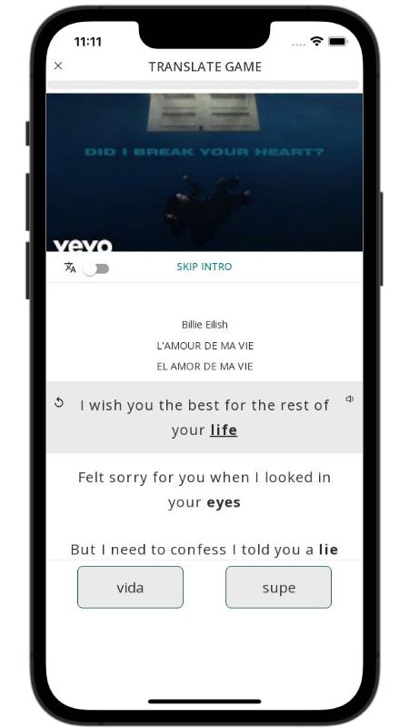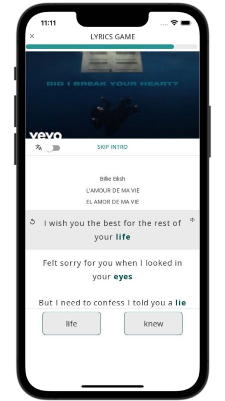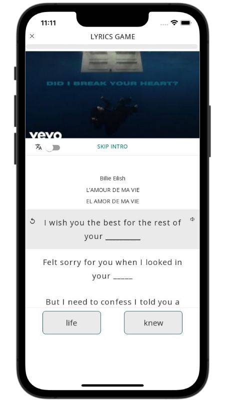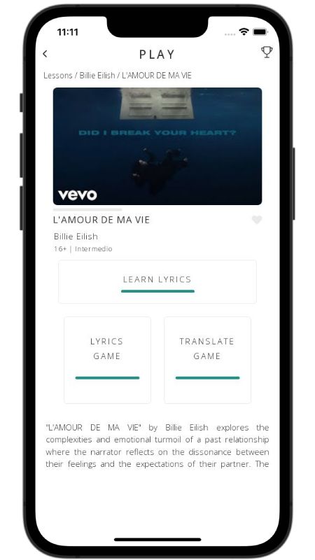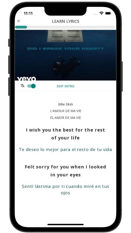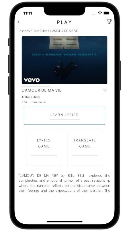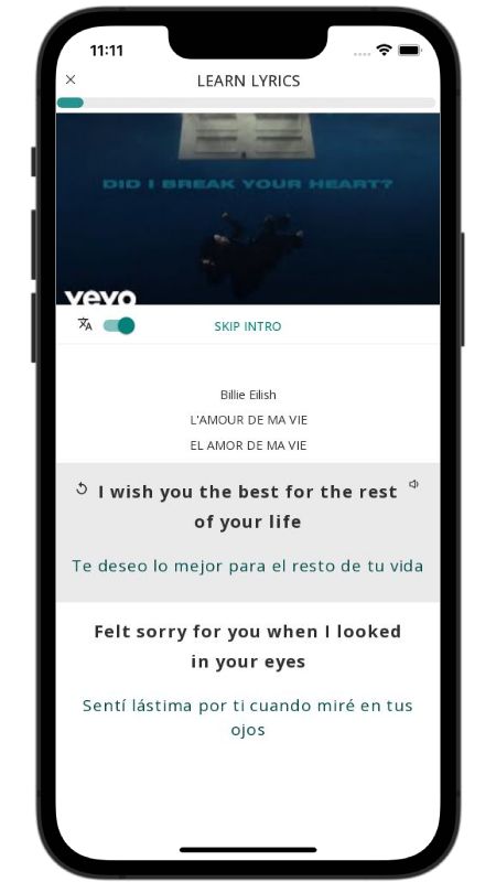 In addition to reading lyric translations, you can now learn English with music and lyrics from your favorite artists.
