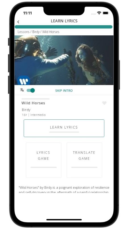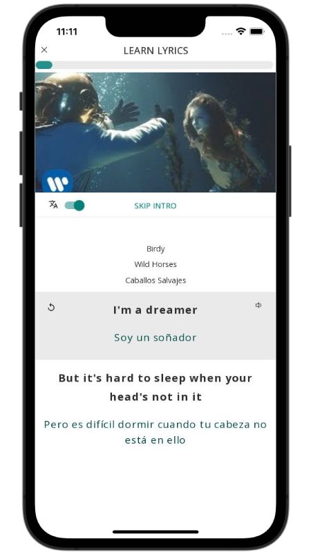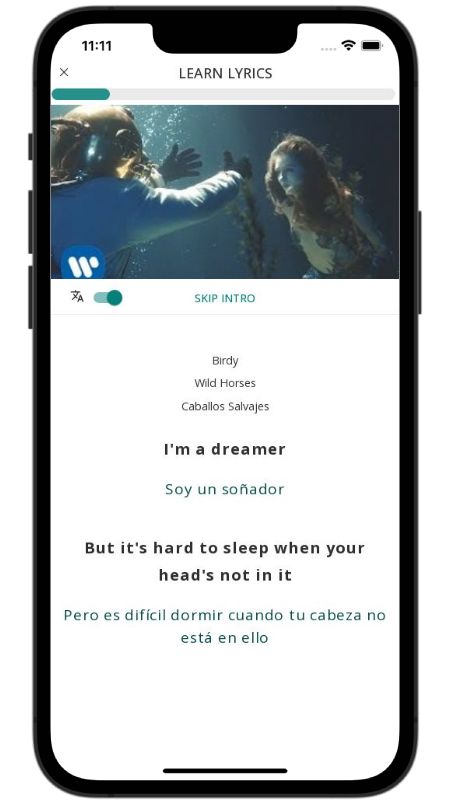 In addition to reading lyric translations, you can now learn English with music and lyrics from your favorite artists.