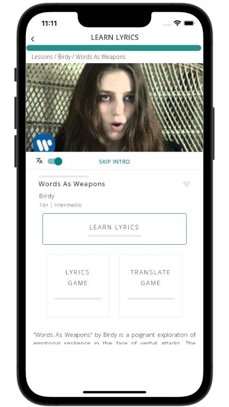 In addition to reading lyric translations, you can now learn English with music and lyrics from your favorite artists.