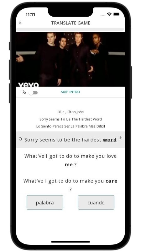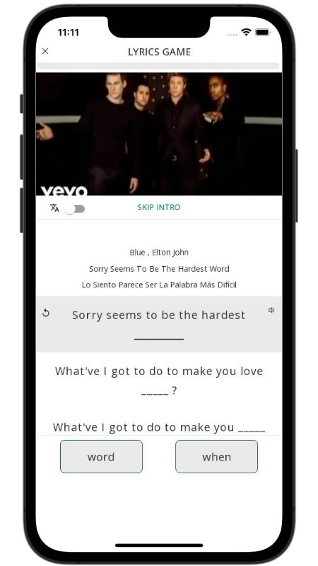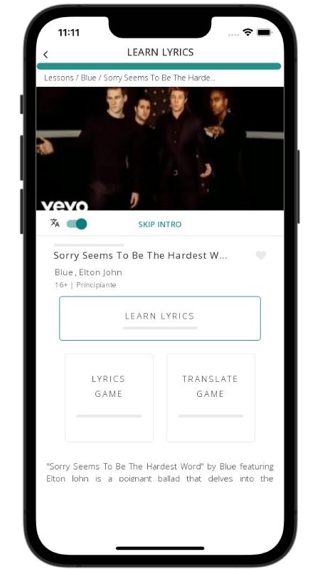 In addition to reading lyric translations, you can now learn English with music and lyrics from your favorite artists.