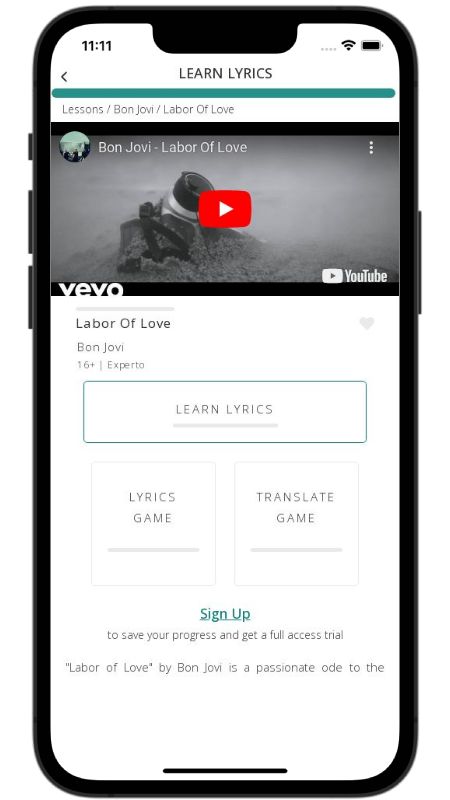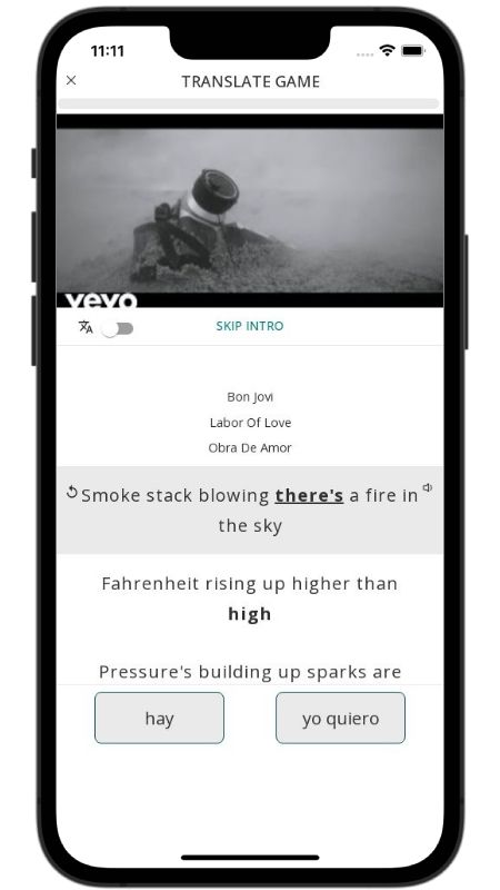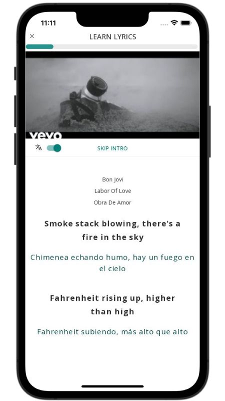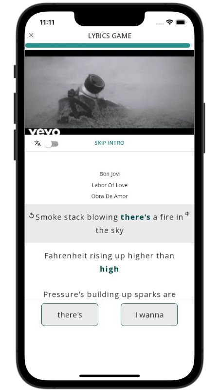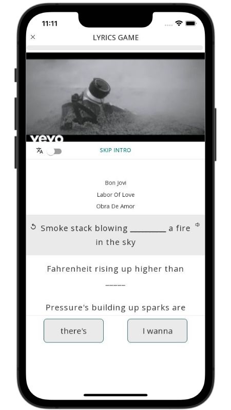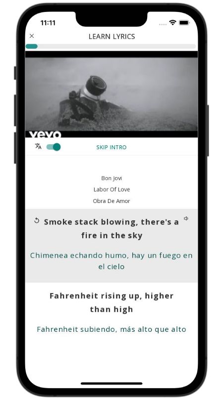 In addition to reading lyric translations, you can now learn English with music and lyrics from your favorite artists.