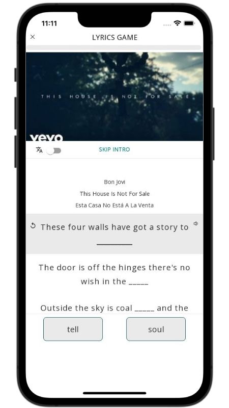 In addition to reading lyric translations, you can now learn English with music and lyrics from your favorite artists.