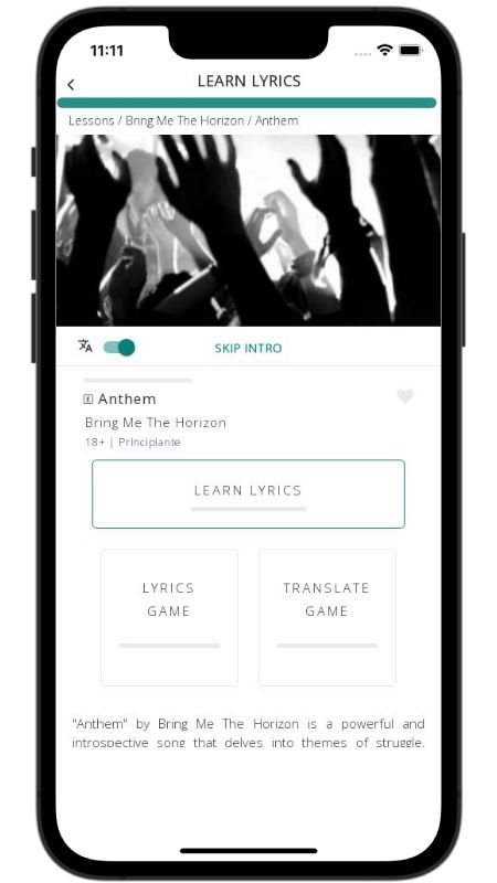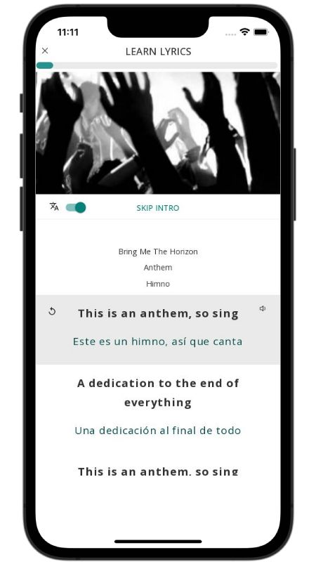 In addition to reading lyric translations, you can now learn English with music and lyrics from your favorite artists.