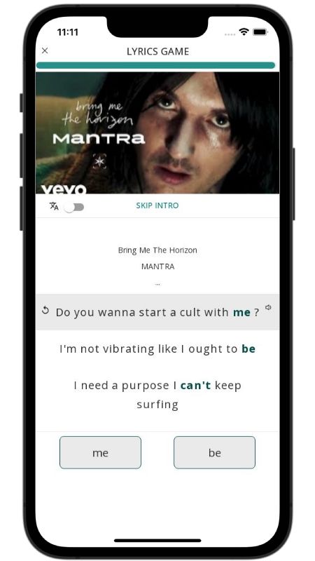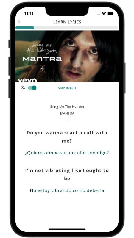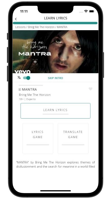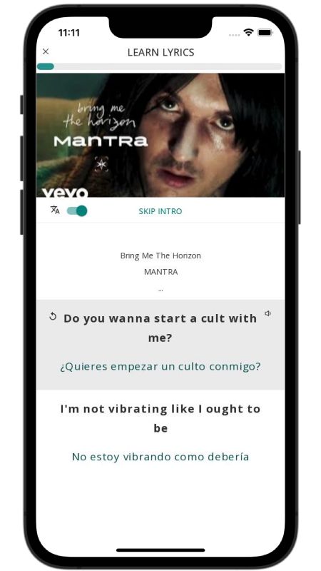In addition to reading lyric translations, you can now learn English with music and lyrics from your favorite artists.