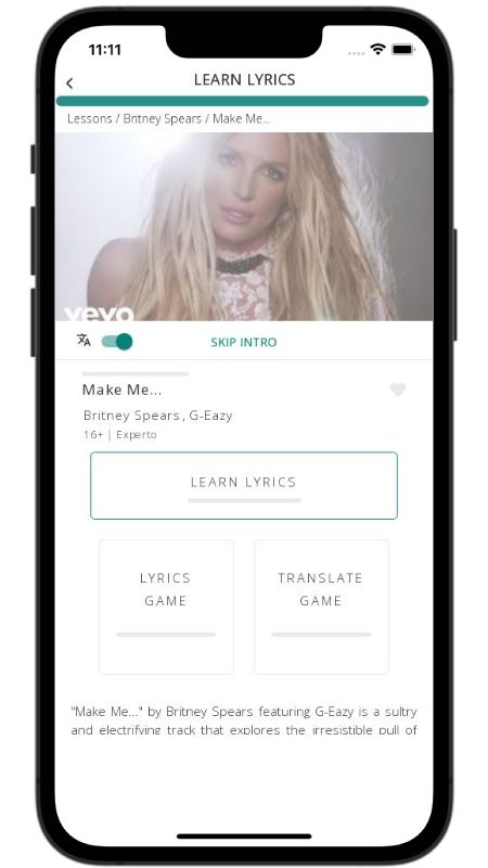 In addition to reading lyric translations, you can now learn English with music and lyrics from your favorite artists.
