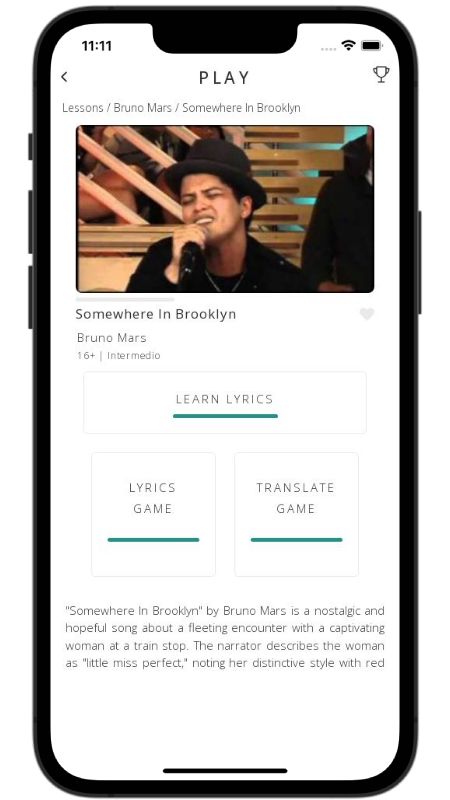 In addition to reading lyric translations, you can now learn English with music and lyrics from your favorite artists.