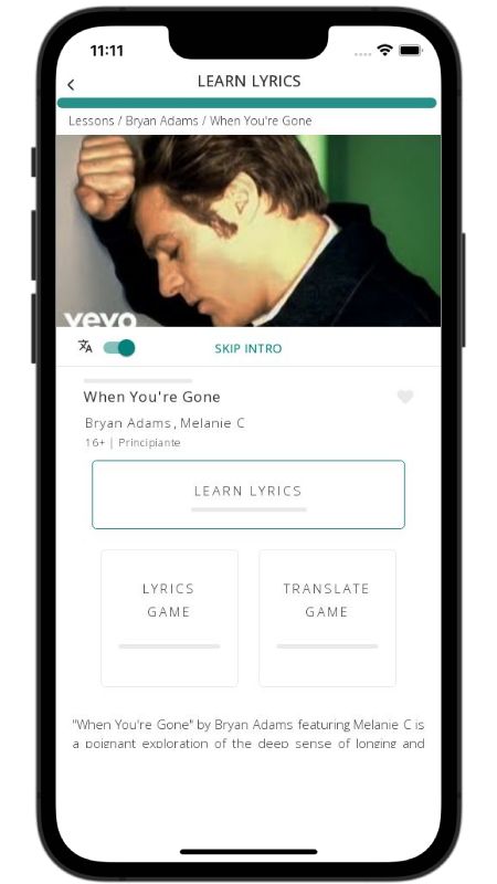 In addition to reading lyric translations, you can now learn English with music and lyrics from your favorite artists.