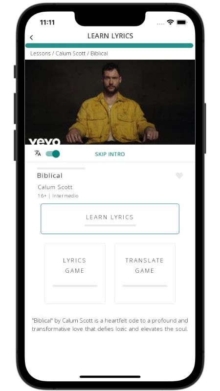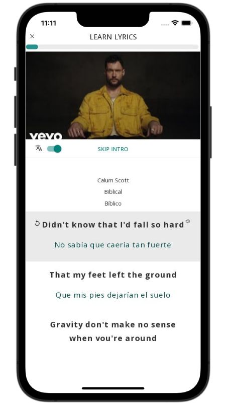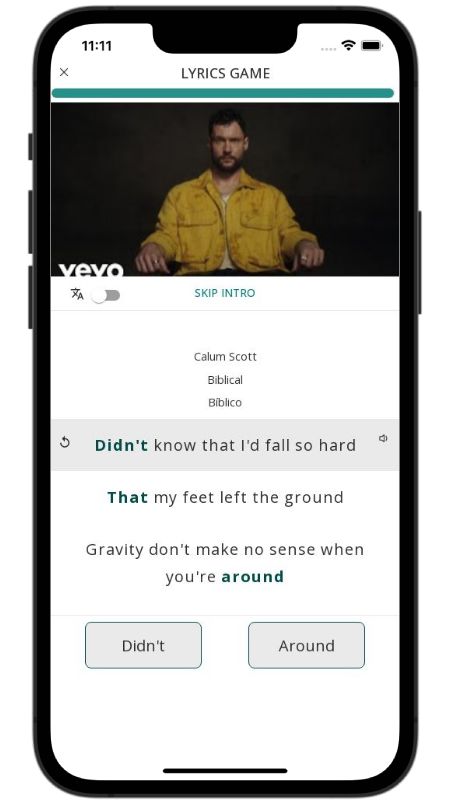 In addition to reading lyric translations, you can now learn English with music and lyrics from your favorite artists.
