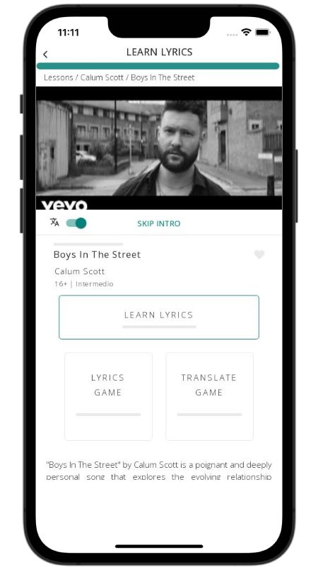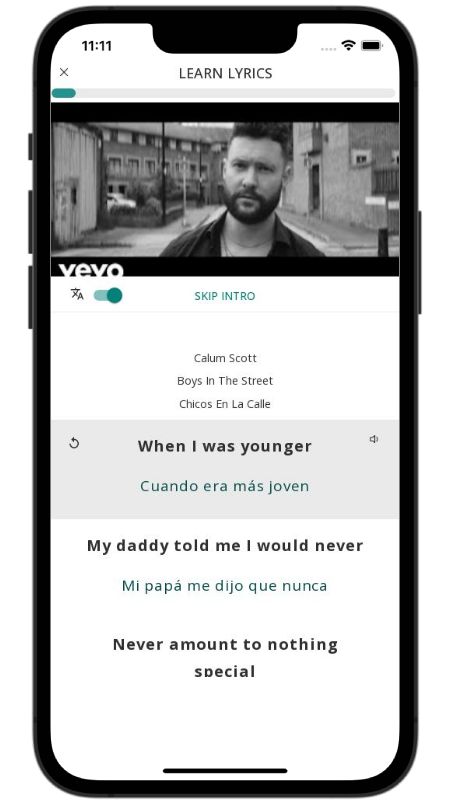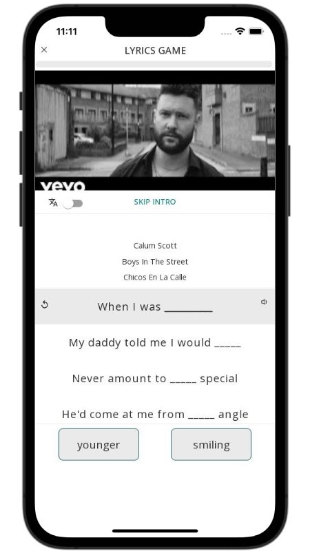 In addition to reading lyric translations, you can now learn English with music and lyrics from your favorite artists.