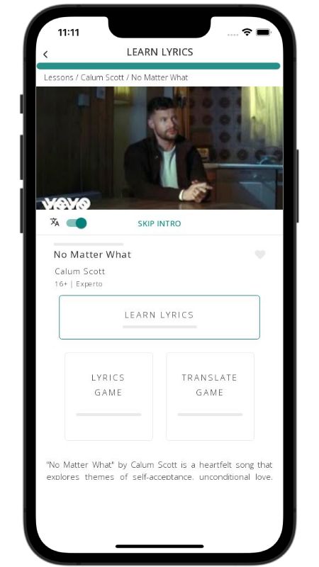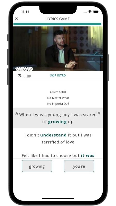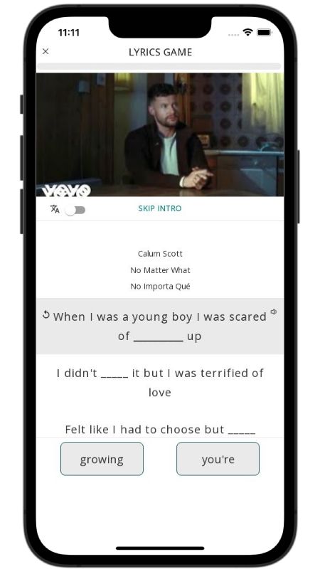 In addition to reading lyric translations, you can now learn English with music and lyrics from your favorite artists.