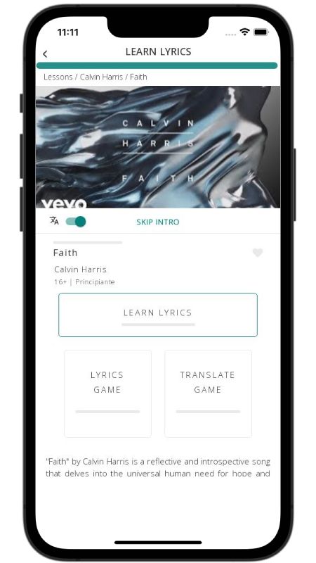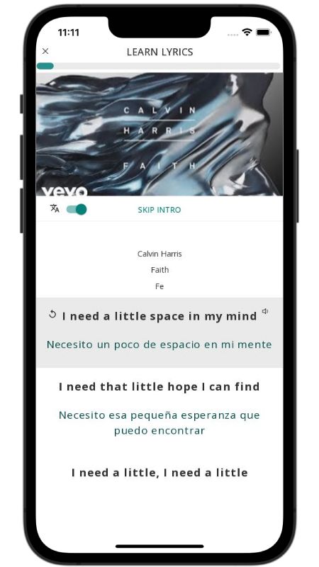 In addition to reading lyric translations, you can now learn English with music and lyrics from your favorite artists.